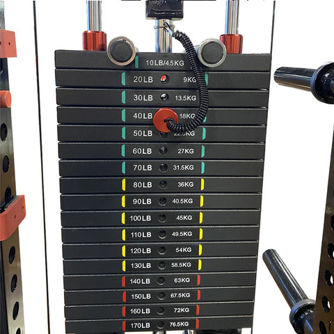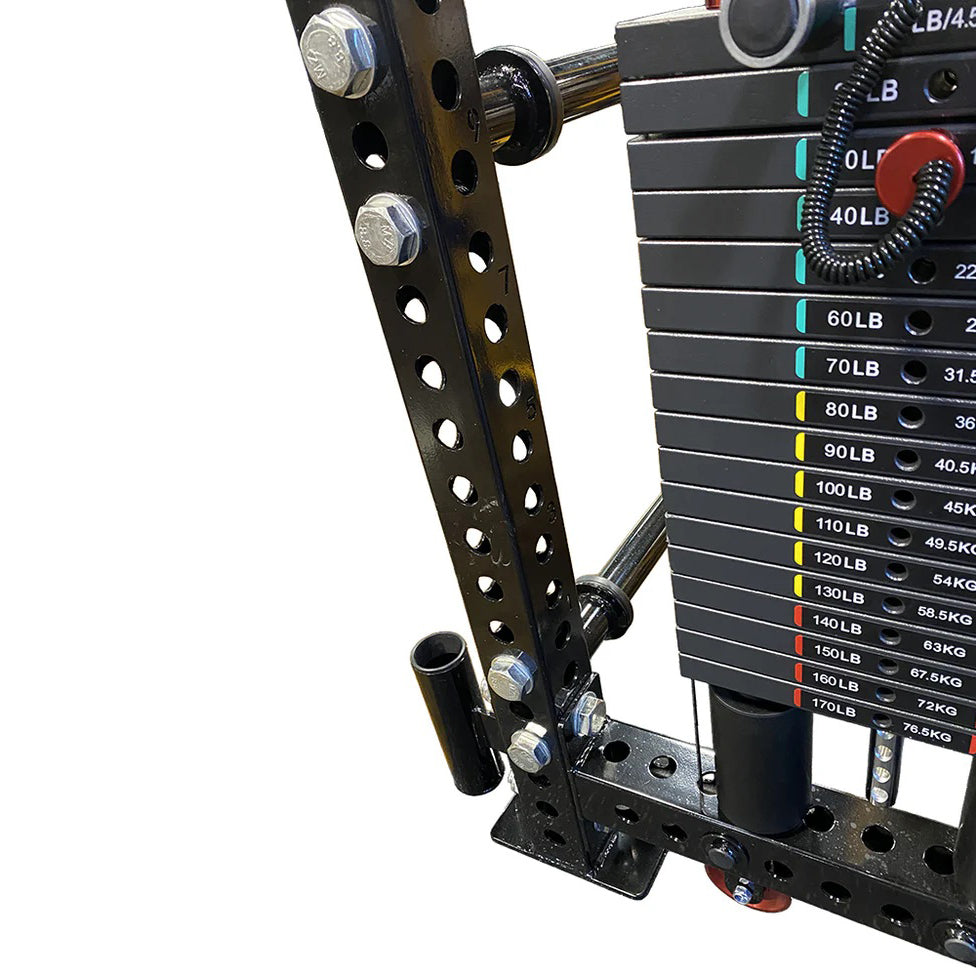 Pin-Loaded 170lb Weight Stack (50lb Add-On Option): The Warrior 3.0 Cable Power Rack's pin-loaded 170lb dual-weight stacks change between 10lb increments with ease. Simply pick your weight, slide in the magnetic weight stacking pin, and rock your fitness routine.
