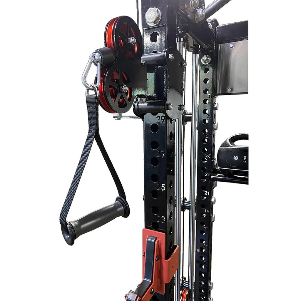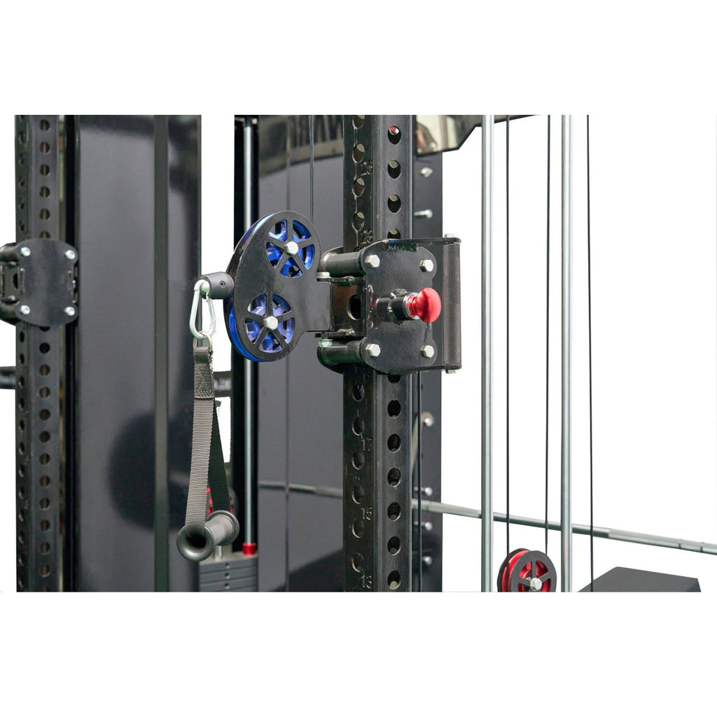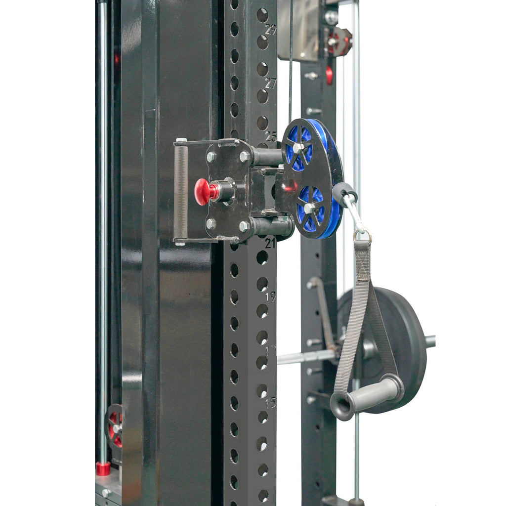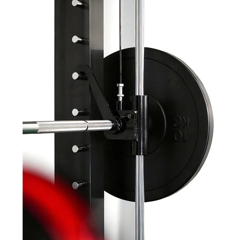 Optional Counterbalance Smith Attachment w/ Needle Bearings: A Smith machine counterbalance attachment uses cables & pulleys to offset the natural weight of the Smith machine bar, creating a zero or near-zero starting weight for the bar. This feature reduces initial resistance and allows for smoother, lighter lifts, making the machine more accessible for all - hardcore lifters, beginners, people recovering from injuries, and those training with less resistance.