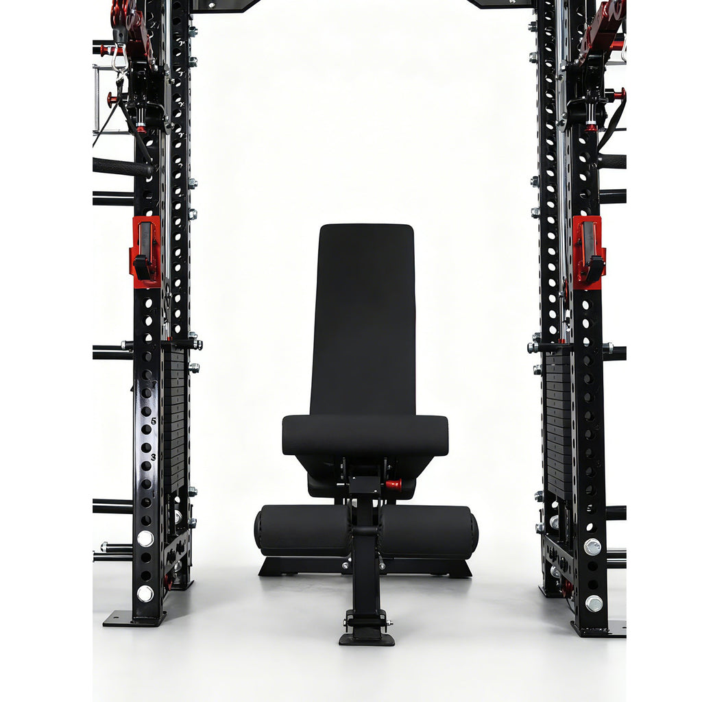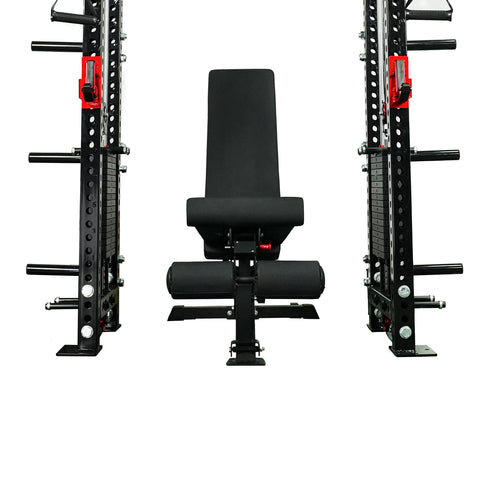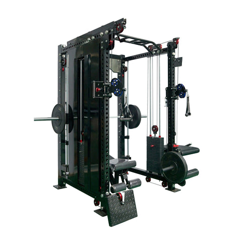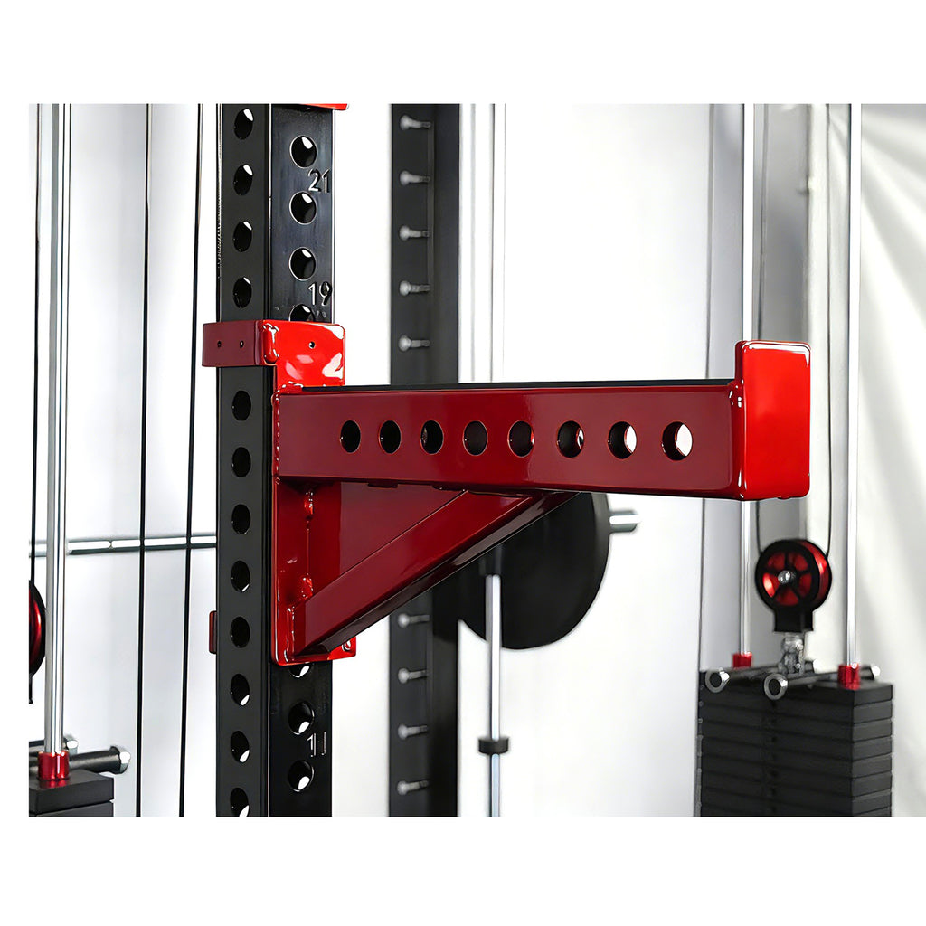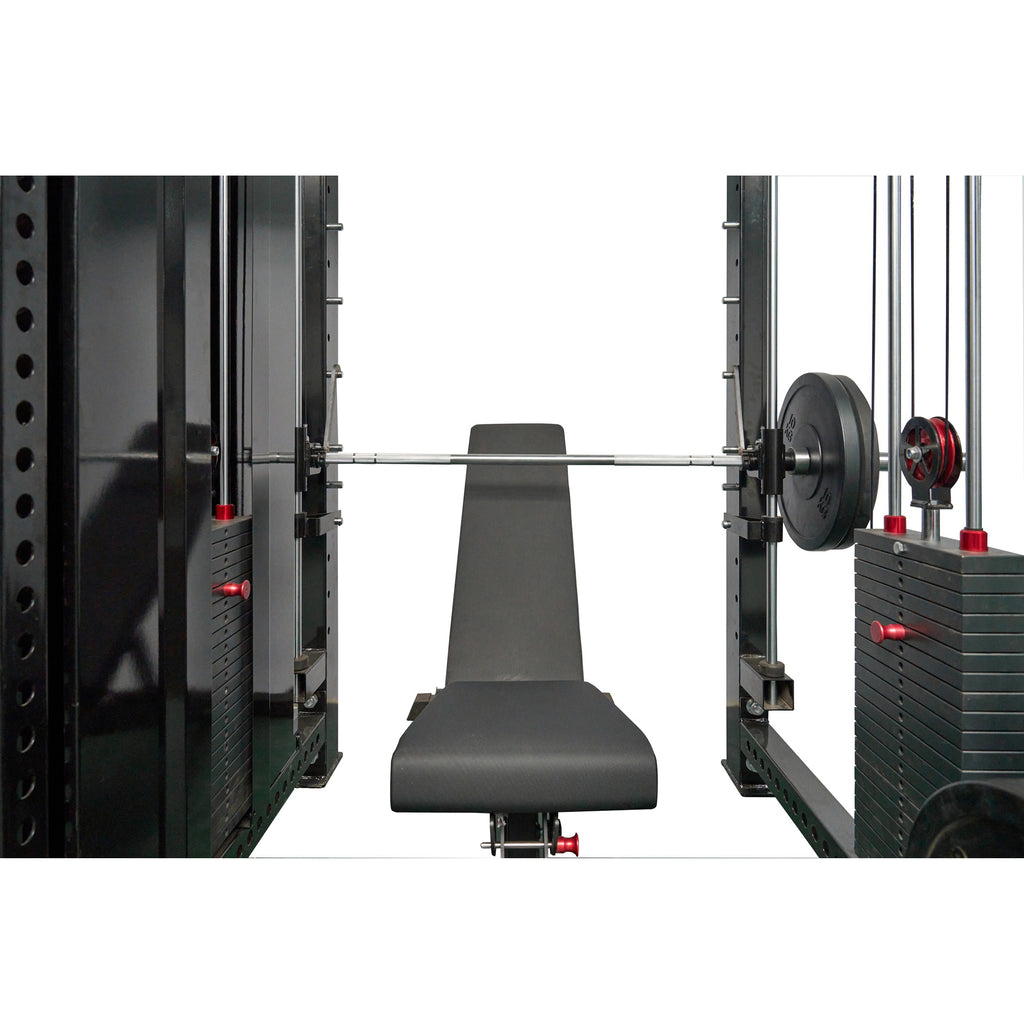 Optional Counterbalance Smith Attachment w/ Needle Bearings: A Smith machine counterbalance attachment uses cables & pulleys to offset the natural weight of the Smith machine bar, creating a zero or near-zero starting weight for the bar. This feature reduces initial resistance and allows for smoother, lighter lifts, making the machine more accessible for all - hardcore lifters, beginners, people recovering from injuries, and those training with less resistance.