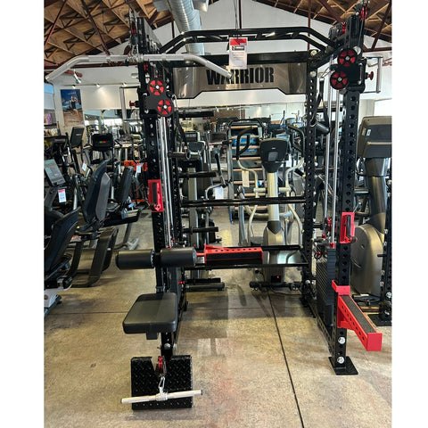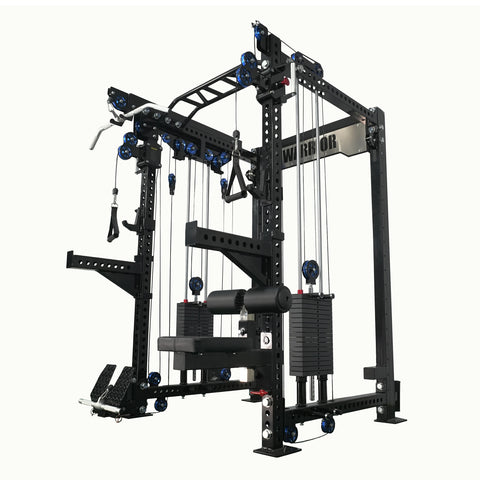 The Warrior 3.5 Cable Crossover Pulley Power Rack Gym System, the evenBiggerBrother to the Warrior 3.0 Cable Crossover Pulley Power Rack, is a fully commercial and industrial-grade functional trainer & rack system that's built to last - with the additional benefit of an optional Smith Attachment!. The Warrior 3.5 Power Rack System hasallthe amenities of the Warrior 3.0 Power Rack, with the bonus of a Lat Pulldown Seat Attachment and the optional Smith Attachment- plus, like the Warrior 3.0, the Warrior 3.5 Power Rack System has more depth than the Warrior 2.0 to allow evengreaterrange of motion and freedom of movement...the Warrior 3.5 Cable Crossover Pulley Power Rack Gym System w/ Lat Pulldown literally has it all, with all the features & options!