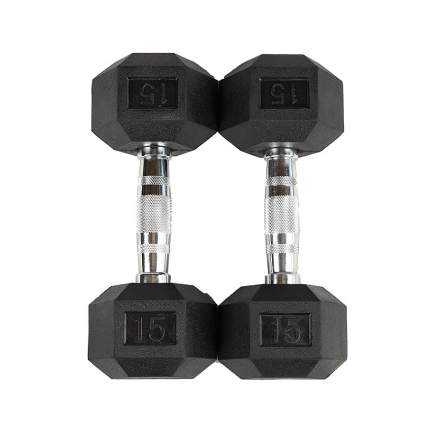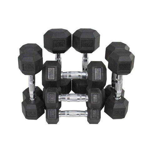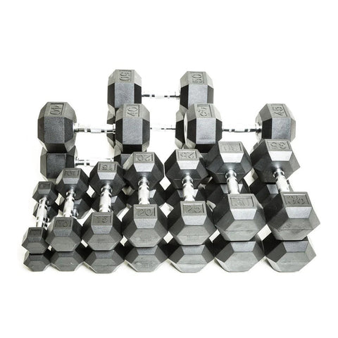 Warrior Rubber Hex Dumbbells are available individually, in pairs or in customizable sets.