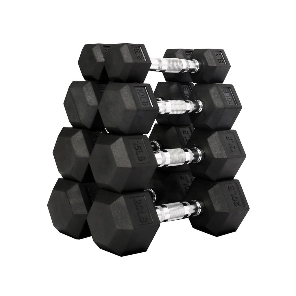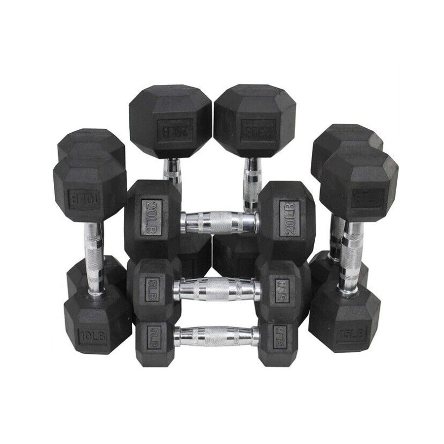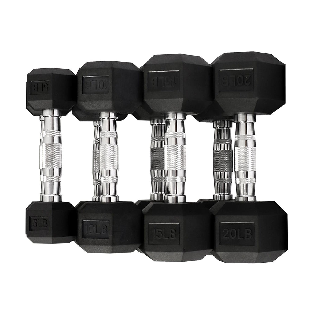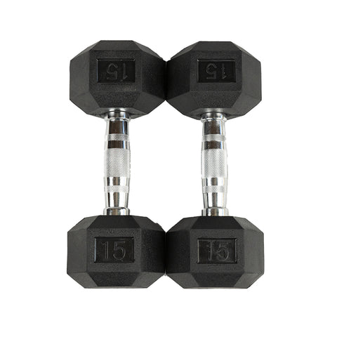 Warrior Rubber Hex Dumbbell Sets embody durability - the build and construction of our sturdy dumbbells simply can't be matched. The Warrior Rubber Hex Dumbbell features a solid cast-iron core with a protective black rubber coating for high-quality strength and reliable stability. These versatile dumbbells resist cracking and fading while protecting floors and equipment. With its 6-sided anti-roll hex design and premium rubber dumbbell head, the Warrior dumbbell is as stylish as it is durable.